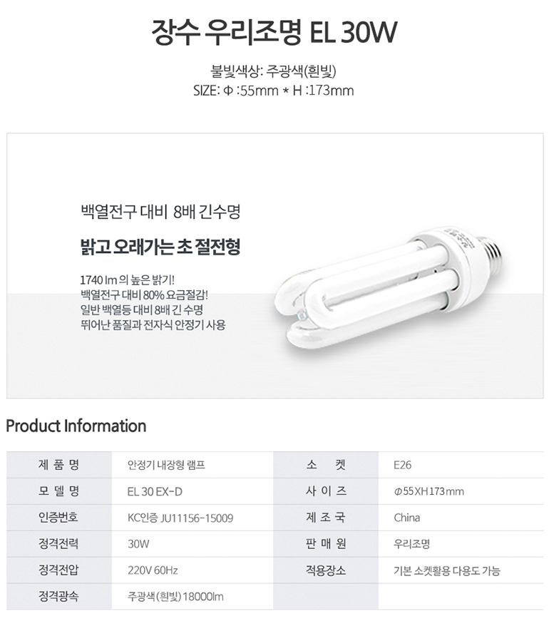 Àå¼ö·¥ÇÁ »ïÆÄÀå EL 30W ·¥ÇÁ ÁÖ±¤»ö ÀϹÝÀü±¸ Á¶¸í